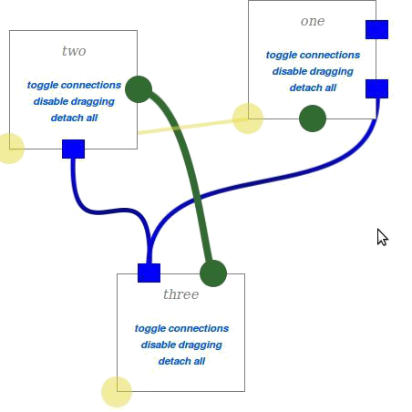 isSource:true or isTarget:true, if the connection is detachable then the endpoint is made draggable, in order to allow users to drag the connection to detach it. Connections dragged off of source or target endpoints in this way can be dropped back onto their original endpoint or onto other endpoints with the same scope, but you cannot subsequently drag a new connection from an endpoint that has been made draggable by this method.